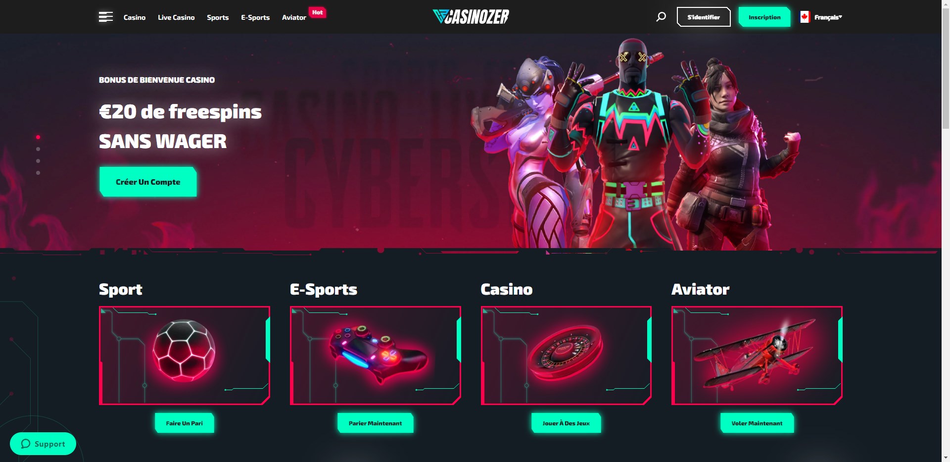 Le bookmaker de Casinozer propose des paris d’avant-match et en ligne sur le football, le tennis, le basketball et l’eSport. Les cotes sont compétitives et les marchés couvrent tous les sports, des ligues majeures aux événements de niche. Les paris en direct sont rapides et les options de retrait vous permettent de sécuriser vos gains ou de limiter vos pertes en temps réel sur ordinateur et mobile.